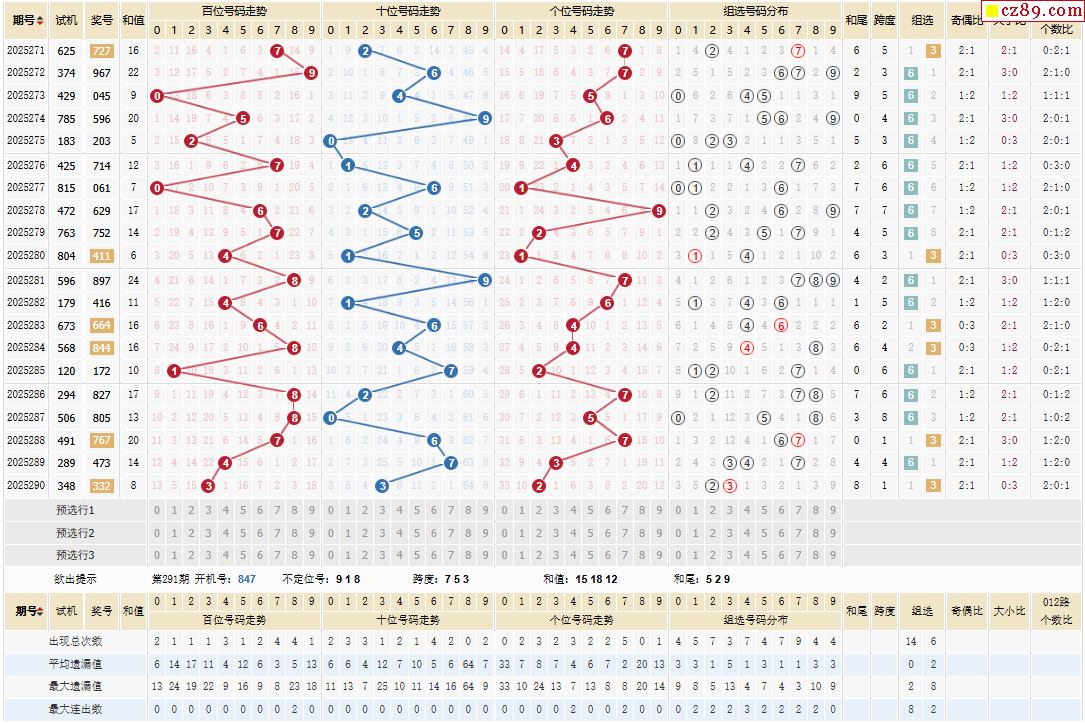 291期福彩3D开奖号码走势图分析